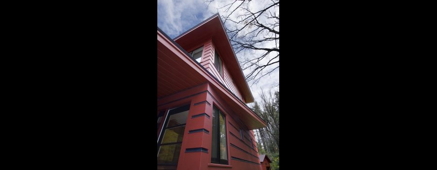 To pay tribute to the past, the barn red color to the cape was restored and used as the color for the new slight FLW-like striped wing. The dressed-in-red Parc de la Villette meets the High Plains Drifter.
