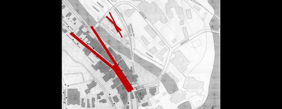 The town plan for Bellows Falls, VT captures the elemental qualities of the man-made efforts to civilize a wild landscape and in the process creates a dynamic downtown space that rivals the best in America and Europe. The gnarly ridge of Fall Mountain, the convoluted flow of the Connecticut River, the up-river and down-river flow of the railroad lines, the great rush of water over the Falls and through the canal to the power station, and the local streets all seem to parallel each other in a horizontal rush down river. In a contrasting act of permanence, the Rockingham Town Hall tower plants itself vertically – it is not going downstream. The dynamic passing of Rockingham and Canal Streets creates an urban space that is as strong and vital as the geological formations from which it has risen. The Waypoint Center design layout is essentially a distillation of the town layout. Here the metaphors of bridges and trains cross creating a ‘town’ square, a patio meeting area for functions like the farmer’s market. Bisecting the platform, the sidewalk becomes a rendition of the old Arch Bridge, which had graced the community for much of the last century. The history of the town has not been lost, but brought back to put the present in context with the past. William Morgan, an architectural historian and critic, recently wrote this about our current Waypoint Center project and its impact on the community of Bellows Falls: